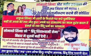 हिंदु शिव भवानी की ओर से पोस्टर लगाने वाले ने अपना नाम लव कुमार सिंह उर्फ रुद्र बताया है. लिखा है कि वह हिंदू शिव भवानी का राष्ट्रीय अध्यक्ष है. पोस्टर पर आगे लिखा गया है, “सोनाक्षी सिन्हा को हिंदू शिव भवानी सेना बिहार में घुसने नहीं देगी.”