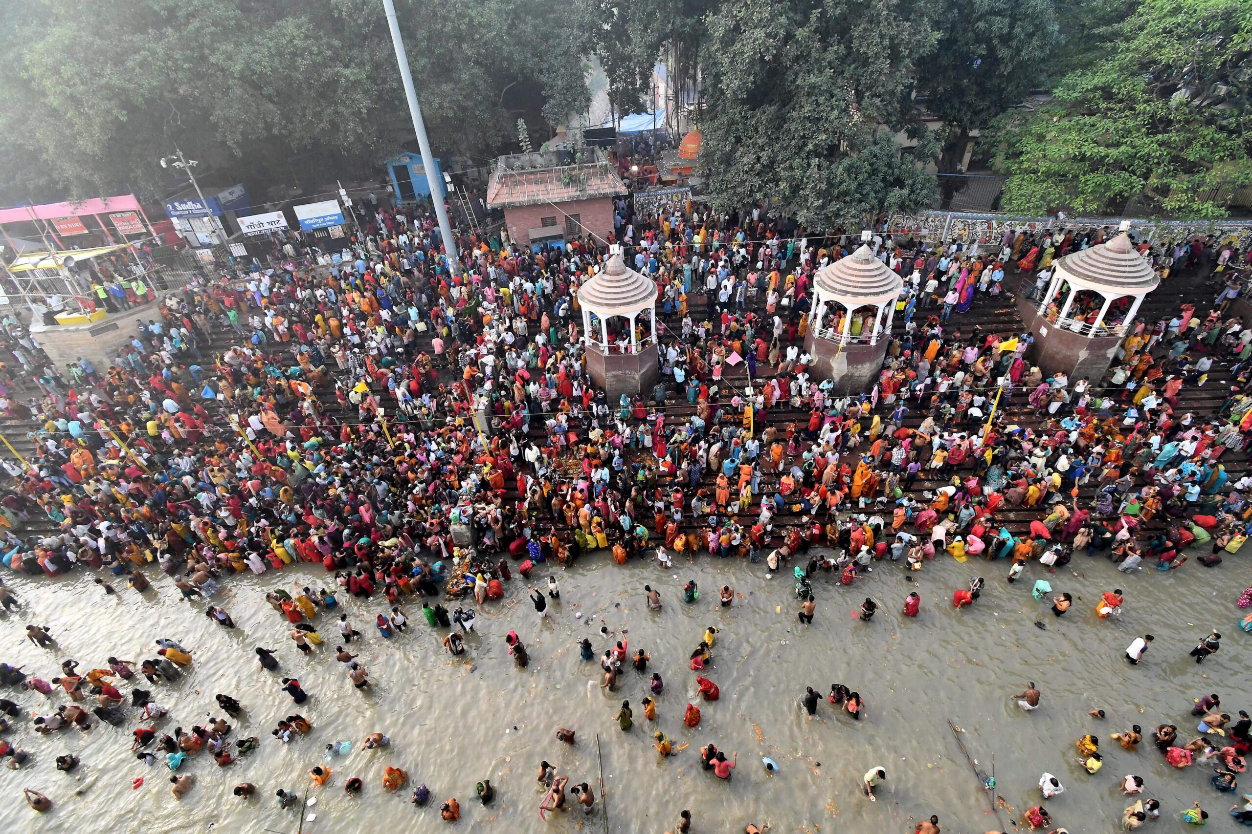 पटना के प्रमुख घाटों पर उमड़ी भीड़
