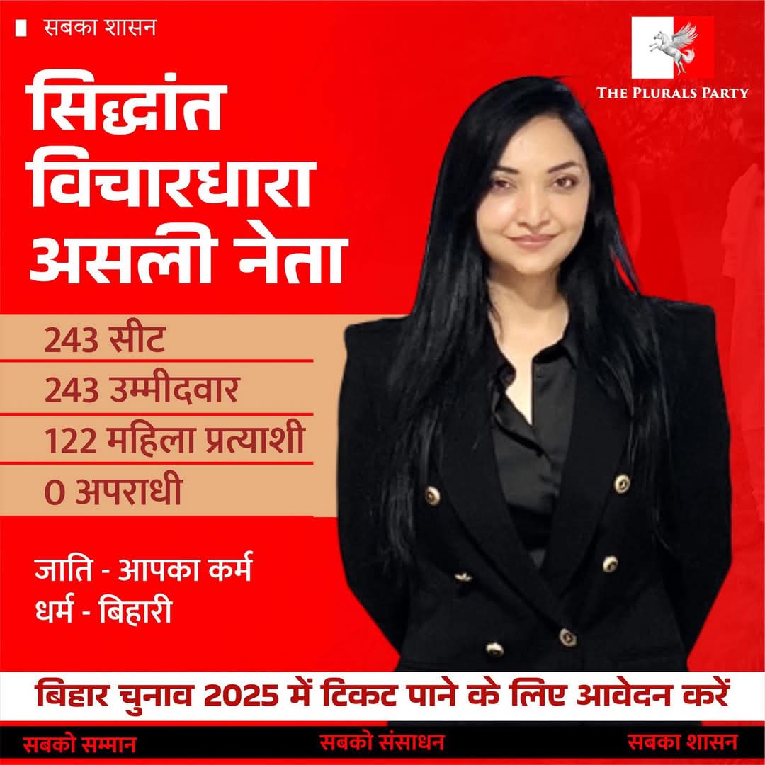 पटना: बिहार की राजनीति में बदलाव का आह्वान करते हुए, द प्लुरल्स पार्टी (दप्पा) ने एक बार फिर अपनी पारदर्शी, लोकतांत्रिक, और संस्थागत प्रक्रिया के माध्यम से उम्मीदवार चयन की घोषणा की है। पार्टी ने स्पष्ट किया कि बेहतर राजनीति के लिए मजबूत और पारदर्शी नेतृत्व ही एकमात्र रास्ता है, और इसी सिद्धांत पर वह पूरी निष्ठा से कायम है।पार्टी ने अपने सोशल मीडिया पोस्ट के द्वारा कहा कि वर्ष 2020 की तरह, इस बार भी दप्पा ने उम्मीदवार चयन के लिए एक ऐसी प्रक्रिया अपनाई है, जिसमें हर कार्यकर्ता और समर्थक को समान अवसर और सम्मान प्राप्त होगा। पार्टी ने जोर देकर कहा कि उम्मीदवारों का चयन कोई बंद कमरे का फैसला नहीं होगा, बल्कि यह एक सहभागी प्रक्रिया होगी, जिसमें हर आवाज़ की अहमियत होगी।