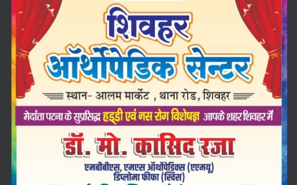 शिवहर: स्थानीय निवासियों के लिए एक बड़ी राहत की खबर सामने आई है। शिवहर शहर में एक नया ऑर्थोपेडिक सेंटर खुलने जा रहा है, जहां मेदांता पटना के सुप्रसिद्ध हड्डी एवं नस रोग विशेषज्ञ डॉ. मोहम्मद कासिद रजा अपनी सेवाएं देंगे। इस सेंटर का उद्घाटन 5 अक्टूबर 2025 को रविवार दोपहर 1 बजे आलम मार्केट, थाना रोड पर होगा। यह सेंटर स्थानीय स्तर पर उन्नत चिकित्सा सुविधाएं प्रदान करने का प्रयास करेगा, जिससे मरीजों को पटना या अन्य बड़े शहरों की यात्रा से बचाया जा सकेगा।