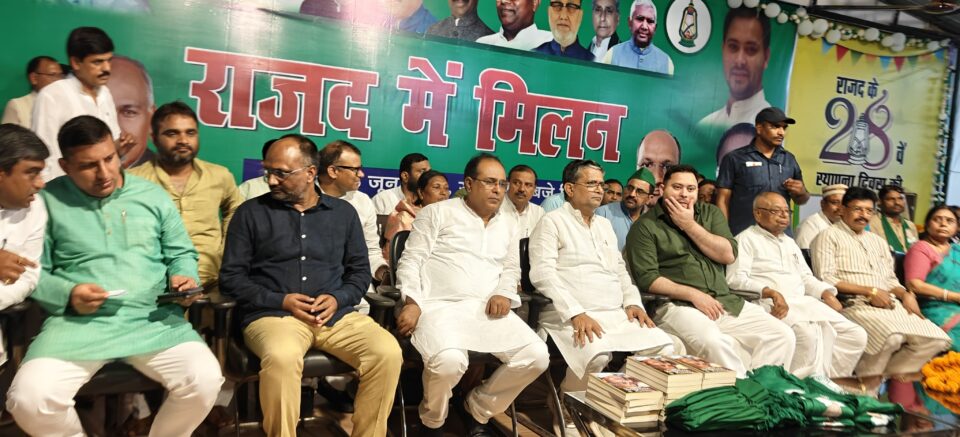 पटना:राष्ट्रीय जनता दल के राज्य कार्यालय के कर्पूरी सभागार में मिलन समारोह प्रदेश अध्यक्ष मंगनी लाल मंडल की अध्यक्षता में हुई जिसका संचालन प्रदेश प्रधान महासचिव रणविजय साहू ने की।इस अवसर पर नेता प्रतिपक्ष तेजस्वी प्रसाद यादव के हाथों से पूर्व सांसद सह पूर्व मंत्री श्रीमती रेणु कुशवाहा, पूर्व सांसद प्रत्याशी विजय सिंह कुशवाहा, राजीव रंजन कोईरी, समाजवादी नेता और जाप के पूर्व प्रदेश अध्यक्ष राघवेन्द्र सिंह कुशवाहा, मो0 एहतेशामुल हक, सुरेन्द्र सिंह यादव, चितरंजन कुमार, कामेश्वर सिंह कुशवाहा, वाल्मिकी जी सहित सैंकड़ों लोगों ने आज राष्ट्रीय जनता दल की सदस्यता ग्रहण की।इस अवसर पर प्रदेश अध्यक्ष मंगनी लाल मंडल, पूर्व मंत्री आलोक कुमार मेहता, लोकसभा संसदीय दल के नेता अभय कुशवाहा, राज्यसभा सांसद संजय यादव, प्रदेश प्रधान महासचिव रणविजय साहू, विधायक बागी कुमार वर्मा, प्रदेश मुख्य प्रवक्ता शक्ति सिंह यादव, प्रदेश प्रवक्ता एजाज अहमद, श्रीमती मधु मंजरी, इकबाल मोहम्मद शमी, प्रमोद कुमार सिन्हा, अरविन्द कुमार सहन एवं उपेन्द्र चन्द्रवंशी उपस्थित थे।