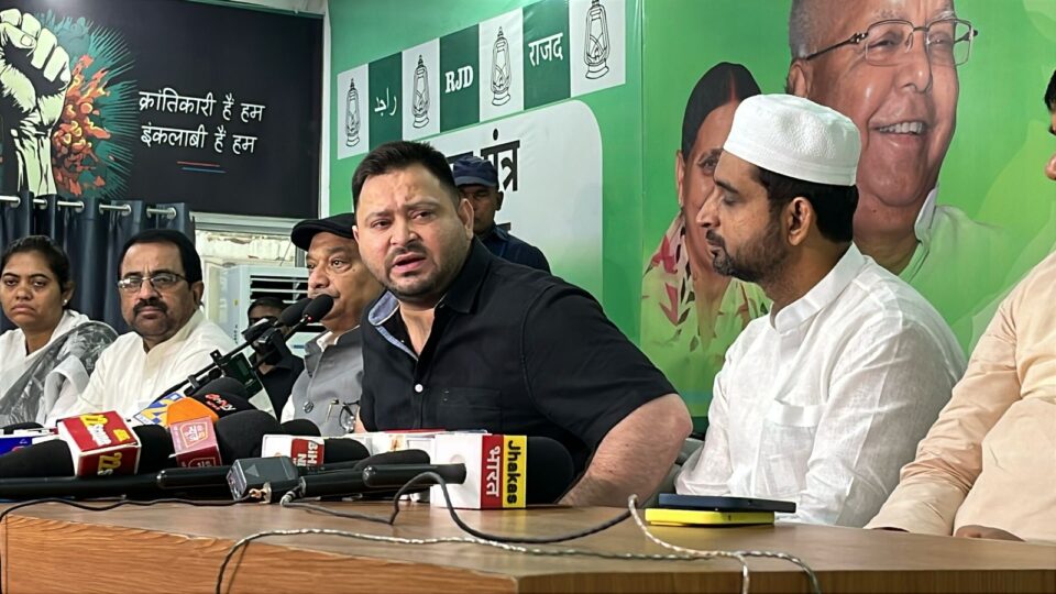 तेजस्वी ने आगे कहा कि 2003 में जिनका नाम वोटर लिस्ट में है उसके संबंध में चुनाव आयोग ने 24 जून, 2025 के आदेश में जिक्र किया लेकिन चुनाव आयोग के कथनी और करनी में काफी अन्तर है। क्या 2003 के बाद जितने भी मतदाता के नाम अंकित है या जुड़े हैं वे सब फर्जी हैं। चुनाव आयोग को स्पष्ट करना चाहिए। 65 लाख एस.आई.आर के बाद नाम हटा दिये गये लेकिन उपमुख्यमंत्री जो प्रधानमंत्री जी के खासमखास हैं उनके द्वारा जो वोटर लिस्ट में घोटाला और उम्र घोटाला किया गया है उसके लिए चुनाव आयोग को दोषी माना जाय या विजय सिन्हा को। इसे लिए विजय सिन्हा दोषी है तो इनपर कार्रवाई क्यों नहीं हो रही है और अब तक चुनाव आयोग इस मामले में चुप्पी क्यों साधे हुए हैं जबकि तेजस्वी के मामले पर चुनाव आयोग तुरंत माहौल बनाने का और मीडिया ट्रायल का कार्य किया गया था। जिस तरह का कार्य हो रहा है उससे स्पष्ट होता है कि चुनाव आयोग हर दिन अपना ड्राफ्ट लिस्ट को बदल रही है। पहले नाम से ही डिजिटली वोटर लिस्ट में नाम अपलोड हो जाते हैं लेकिन नई फाईल के बाद सर्च करना आसान नहीं रह गया है। लोकसभा में नेता प्रतिपक्ष श्री राहुल गांधी जी के सवाल उठाने के बाद चुनाव आयोग इस तरह के ड्राफ्ट सूची को बदल दी है और जो पहले से फाईल मतदाता सेवा पोर्टल के माध्यम से आता था उसे बंद कर दिया गया है। जिस तरह का चुनाव आयोग के द्वारा गंदा खेल खेला जा रहा है इससे स्पष्ट होता है कि भाजपा के इशारे पर और उनके अनुसार ही चुनाव आयोग कार्य कर रही है। जब माननीय सर्वोच्च न्यायालय के दिशा-निर्देश और उनके सुझाव को भी चुनाव आयोग नहीं मान रही है तो इसी से समझा जा सकता है कि किस तरह का खेल खेला जा रहा है। इन्होंने कहा कि हमलोग लोकतंत्र और बिहार के लोगों के अधिकार की लड़ाई को सदन, सड़क से लेकर न्यायालय तक ले जाने का काम किया है और आगे भी आगे भी करेंगे क्योंकि लोकतांत्रिक प्रक्रिया को कमजोर करने वाली कार्रवाई एस.आई.आर के नाम पर चल रही है और भाजपा चुनाव आयोग को माध्यम बनाकर मतदाताओं के अधिकार को छीनना चाहती है।