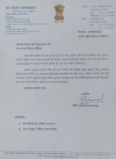 सांसद संजय जायसवाल ने मेयर पर सवाल खड़ा करते हुए कहा है कि निगम के दो कर्मचारी जुलुम साह और तबरेज डीजल कूपन काटने का काम करते थे। इन्हें महीनों पहले हटाने की अनुशंसा कर दी गई थी। बावजूद ये अब भी नगर निगम में तैनात हैं और कथित काला कारोबार चला रहे हैं।उन्होंने यह भी आरोप लगाया कि मेयर गरिमा देवी सिकारिया जानबूझकर डीजल चोरी के सबूतों को सार्वजनिक नहीं कर रही हैं।संजय जायसवाल ने घोषणा की कि वे शहरी विकास मंत्री जीवेश कुमार से मिलकर इस पूरे मामले पर विशेष जांच दल बैठाने की मांग करेंगे। उनका कहना है कि विगत दो सालों में सशक्त समिति के जिन वार्डों में काम हुआ है, उनकी भी वीडियोग्राफी के साथ जांच कराई जानी चाहिए।