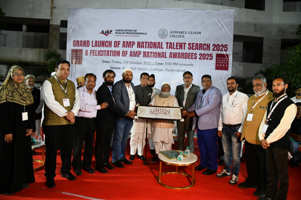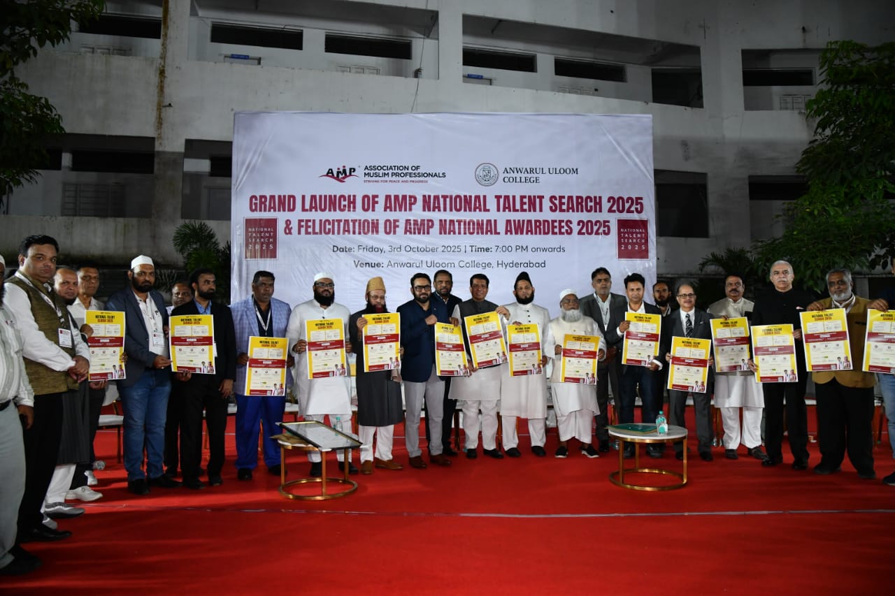 हैदराबाद:एसोसिएशन ऑफ मुस्लिम प्रोफेशनल्स (AMP) ने स्कूल और कॉलेज के छात्रों के लिए छठी राष्ट्रीय प्रतिभा खोज परीक्षा (AMP-NTS 2025) की आधिकारिक घोषणा की। इसका विशेष पोस्टर आज हैदराबाद के मल्लेपल्ली स्थित अनवारुल उलूम कॉलेज में आयोजित एक भव्य समारोह में जारी किया गया। यह परीक्षा 13 दिसंबर को आयोजित होगी। NTS का उद्देश्य छात्रों की सामान्य जानकारी, प्रतिस्पर्धी भावना को बढ़ावा देना और मेधावी छात्रों की पहचान कर उन्हें भविष्य की राष्ट्रीय प्रतियोगी परीक्षाओं के लिए तैयार करना है। सफल छात्रों को कोचिंग स्कॉलरशिप, नकद पुरस्कार, प्रमाण पत्र और अन्य लाभ प्रदान किए जाएंगे।