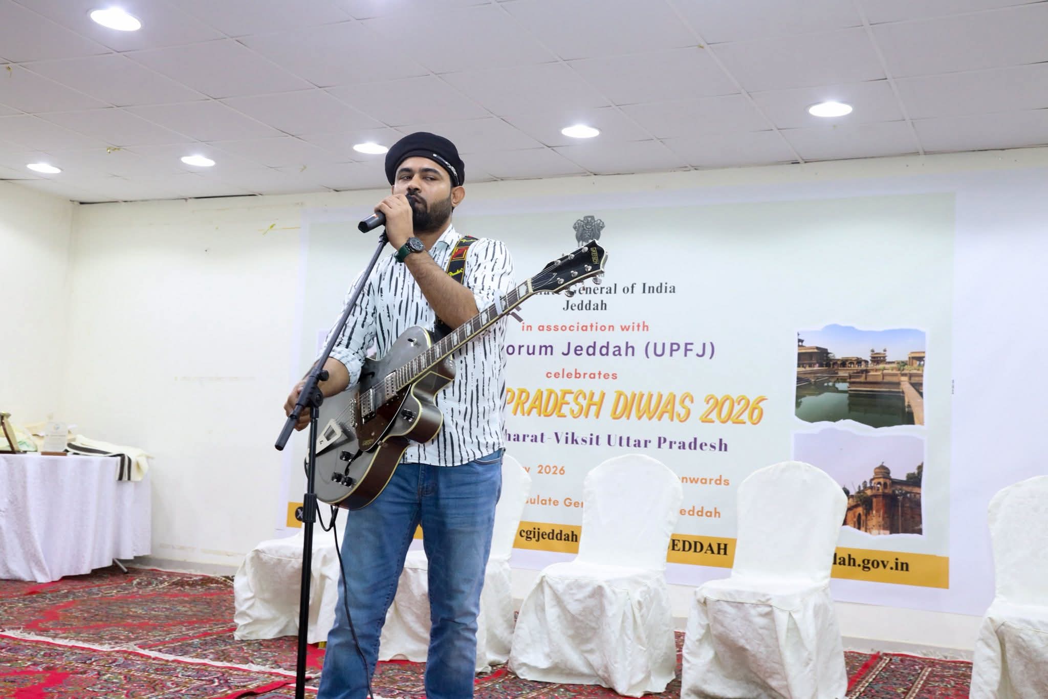जेद्दा: भारतीय महावाणिज्य दूतावास, जेद्दा परिसर में उत्तर प्रदेश दिवस 2026 बड़े उत्साह, सांस्कृतिक रंगारंगता और देशभक्ति के जोश के साथ मनाया गया। यह जेद्दा में UP दिवस का पहला भव्य आयोजन था, जिसे UP फोरम जेद्दा के तत्वावधान में आयोजित किया गया। इस कार्यक्रम में राजनयिक, समुदाय के नेता, कलाकार और भारतीय प्रवासी समुदाय के सदस्य बड़ी संख्या में शामिल हुए।कार्यक्रम की शुरुआत मास्टर ऑफ सेरेमनी डॉ. प्रिंस जिया ने की, जिन्होंने शाम को आकर्षक और गरिमामय स्वरूप प्रदान किया। शाम की शुरुआत उत्तर प्रदेश सरकार के MSME एवं निर्यात संवर्धन विभाग की वन डिस्ट्रिक्ट वन प्रोडक्ट (ODOP) सेल के रोहित धीर द्वारा प्रस्तुति से हुई। इसके बाद ODOP वॉल का उद्घाटन किया गया और उत्तर प्रदेश के महत्वपूर्ण निर्यात उत्पादों की प्रदर्शनी लगाई गई, जिसने प्रदेश की समृद्ध विरासत, संस्कृति और परंपरा को प्रतीकात्मक रूप से प्रदर्शित किया।